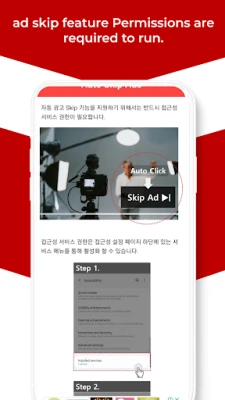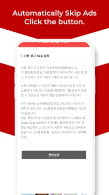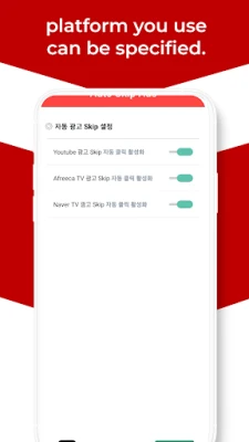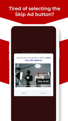 เบื่อไหมกับการที่โฆษณาวิดีโอต้องมาคั่นช่วงเวลาสำคัญในการรับชมคอนเทนต์โปรดของคุณ? ขอแนะนำ "Auto Skip Ads" แอปพลิเคชันอัจฉริยะที่จะเข้ามาเปลี่ยนประสบการณ์การดูวิดีโอของคุณให้ราบรื่นไร้รอยต่อ โดยทำหน้าที่ข้ามโฆษณาให้อัตโนมัติทันทีที่คุณเจอ ช่วยให้คุณไม่ต้องเสียจังหวะกดปุ่ม "ข้ามโฆษณา" ด้วยตัวเองอีกต่อไป สัมผัสความสะดวกสบายในการรับชมคอนเทนต์บนแพลตฟอร์มยอดนิยมอย่าง Youtube, Naver TV และ AfreecaTV โดยที่แอปจะจัดการเรื่องโฆษณาให้คุณเอง
