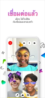 สำหรับเด็กๆ Messenger Kids คือโลกแห่งความสนุกสนานไร้ขีดจำกัด! ปลดปล่อยจินตนาการไปกับสติกเกอร์ GIF กรอบรูป และอีโมจิสุดน่ารักที่ออกแบบมาโดยเฉพาะ ช่วยให้พวกเขาแสดงออกถึงความเป็นตัวเองได้อย่างเต็มที่ ไม่ว่าจะเป็นการวิดีโอคอลแบบตัวต่อตัวหรือแบบกลุ่ม ก็สามารถเพิ่มสีสันด้วยหน้ากากอินเทอร์แอคทีฟแสนสนุก เปลี่ยนทุกการสนทนาให้กลายเป็นการผจญภัย กล้องในแอปอัดแน่นด้วยฟีเจอร์ให้เด็กๆ สร้างสรรค์วิดีโอและตกแต่งภาพถ่ายได้อย่างอิสระ พร้อมแบ่งปันช่วงเวลาพิเศษกับคนที่พวกเขารักในสภาพแวดล้อมที่ปลอดภัย