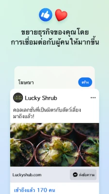 พัฒนาธุรกิจของคุณให้เติบโตและเชื่อมต่อกับผู้คนได้มากขึ้นด้วย Meta Business Suite แอปพลิเคชันที่ช่วยให้คุณบริหารจัดการเพจ โปรไฟล์ และการตลาดบนแพลตฟอร์ม Meta ทั้งหมดได้อย่างง่ายดายและมีประสิทธิภาพในที่เดียว
