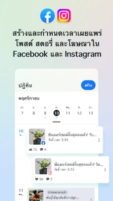 โลกโซเชียลที่ซับซ้อน กลายเป็นเรื่องง่ายสำหรับธุรกิจของคุณ ด้วยแพลตฟอร์มที่ออกแบบมาเพื่อการบริหารจัดการเนื้อหาอย่างมีประสิทธิภาพสูงสุด ไม่ว่าจะเป็น Facebook หรือ Instagram คุณก็สามารถวางแผน สร้างสรรค์ และกำหนดเวลาการเผยแพร่โพสต์ สตอรี่ ได้อย่างแม่นยำและเป็นระบบ ทำให้การนำเสนอแบรนด์ของคุณสู่สายตาผู้ติดตามเป็นไปอย่างต่อเนื่องและสร้างผลกระทบได้อย่างที่ตั้งใจ