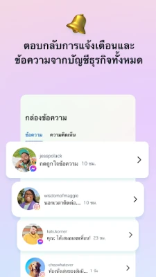 เสริมสร้างความผูกพันกับกลุ่มเป้าหมายของคุณด้วยเครื่องมือสื่อสารที่ครบวงจร รวบรวมข้อความส่วนตัวและความคิดเห็นจากทุกช่องทางโซเชียลไว้ในที่เดียว ตอบกลับได้ทันท่วงทีและมีประสิทธิภาพ ไม่พลาดทุกการสนทนาที่สำคัญ ยิ่งไปกว่านั้น คุณยังสามารถตั้งค่าระบบตอบกลับอัตโนมัติ เพื่อประหยัดเวลาและมอบประสบการณ์ที่สม่ำเสมอให้กับลูกค้าของคุณ