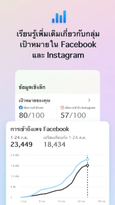 ก้าวไปข้างหน้าด้วยข้อมูลเชิงลึกที่เข้าใจง่าย วิเคราะห์ประสิทธิภาพของเนื้อหา ไม่ว่าจะเป็นโพสต์ สตอรี่ หรือแคมเปญโฆษณาของคุณ ว่าได้รับการตอบรับจากผู้ชมอย่างไร ข้อมูลเหล่านี้จะช่วยให้คุณปรับกลยุทธ์ สร้างสรรค์แคมเปญที่โดนใจ และเพิ่มผลลัพธ์ทางธุรกิจได้อย่างแท้จริง พร้อมรับการแจ้งเตือนสำคัญและรายการสิ่งที่ต้องดำเนินการทันที เพื่อให้คุณไม่พลาดทุกจังหวะสำคัญในการดำเนินงาน