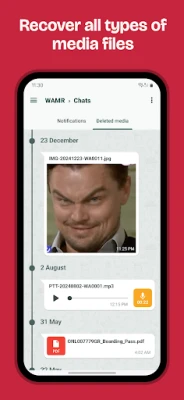 เคยไหมที่คุณพลาดข้อความสำคัญหรือรูปภาพที่ถูกส่งมาแล้วถูกลบไปอย่างรวดเร็ว? หากคุณกำลังมองหาวิธีที่จะไขปริศนาของบทสนทนาที่หายไป WAMR คือคำตอบที่คุณค้นหา แอปพลิเคชันนี้ออกแบบมาเพื่อช่วยคุณกู้คืนข้อความตัวอักษรและไฟล์แนบสื่อต่างๆ ไม่ว่าจะเป็นภาพถ่าย วิดีโอ บันทึกเสียง GIF หรือสติกเกอร์ ที่เคยปรากฏในแอปพลิเคชันแชทของคุณ หยุดความสงสัยและกลับมาควบคุมทุกการสื่อสารในโลกดิจิทัลได้อย่างเต็มที่