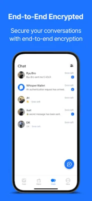 หัวใจสำคัญของ Whisper คือการรักษาความลับ ข้อความทุกฉบับที่คุณส่งผ่าน Whisper จะได้รับการเข้ารหัสอย่างแน่นหนาตั้งแต่ต้นทางถึงปลายทาง ทำให้มั่นใจได้ว่ามีเพียงผู้รับที่ตั้งใจเท่านั้นที่จะสามารถเข้าถึงเนื้อหาได้ และเพื่อเสริมสร้างความปลอดภัยอีกขั้น ข้อความเหล่านั้นจะถูกทำลายตัวเองโดยอัตโนมัติทันทีที่ได้รับการยืนยันการรับจากผู้รับ ทำให้ไม่ทิ้งร่องรอยไว้เบื้องหลัง ปลดล็อกความกังวลและสนทนาได้อย่างอิสระบนแพลตฟอร์มที่ให้ความสำคัญกับความเป็นส่วนตัวของคุณเป็นอันดับแรก